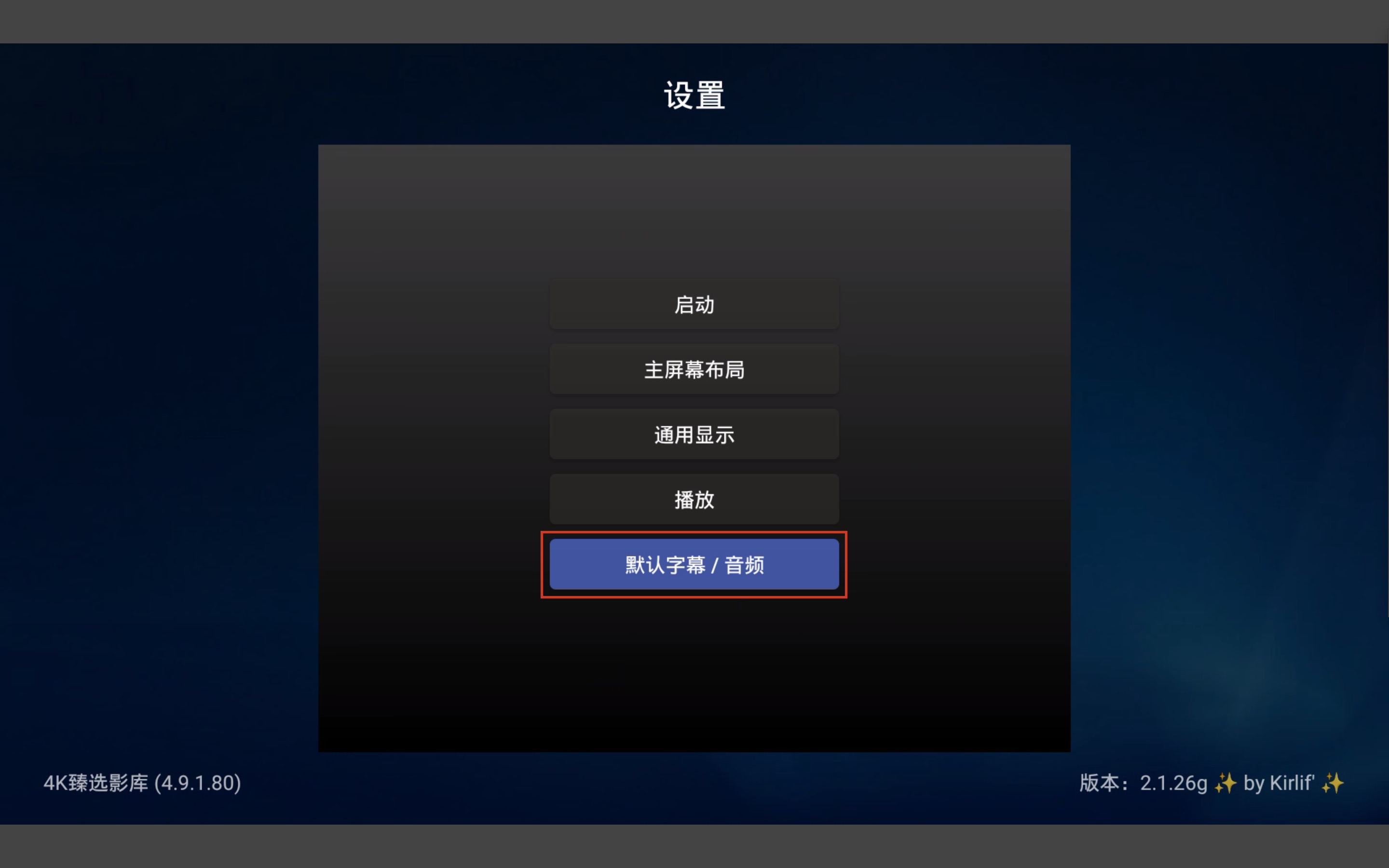 点选“默认字幕/音频”