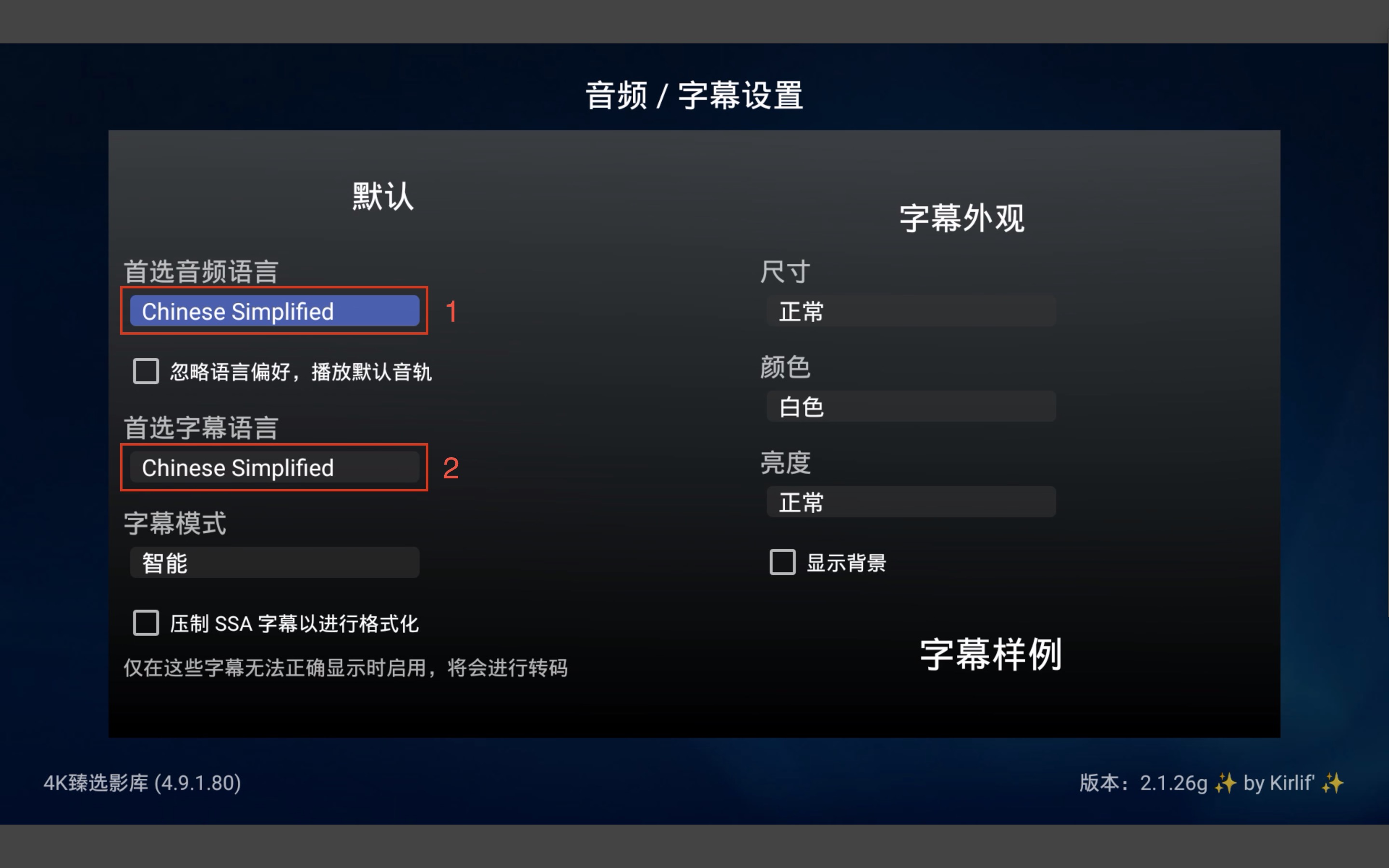 把“首选音频语言”和“首选字幕语言”设置成中文,设置完成回到首页欣赏影片。